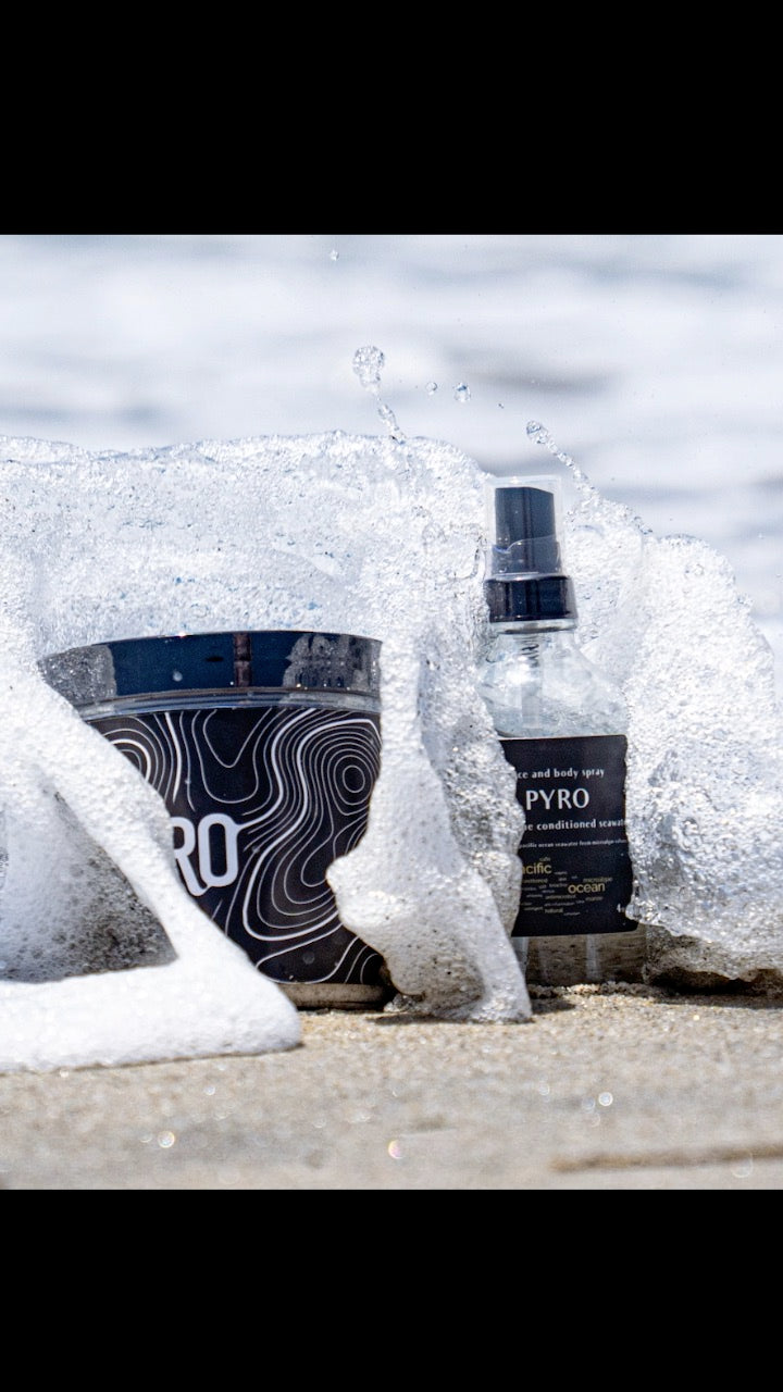 Bring the ocean to your skin—no swimsuit required. PYRO OceanEssence Mist is crafted from 100% Pacific Ocean seawater, meticulously micro-filtered (0.22µm), UV-sterilized, and heat-treated for safety and purity. Housed in a sleek 4 oz glass bottle, it delivers a refreshing, mineral-rich mist that revitalizes and tones your skin—naturally.